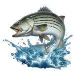 Striped bass jperch on the background of splashing water.